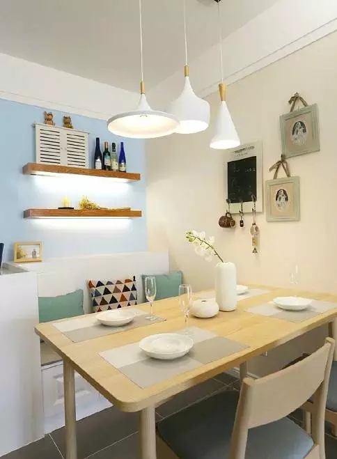 多种设计结合在一起,就能够让我们的餐厅,变得非常实用,比如卡座加圆桌的设计,再加上细脚的餐桌椅,只占据了一个角落的小餐厅,非常适合小户型。