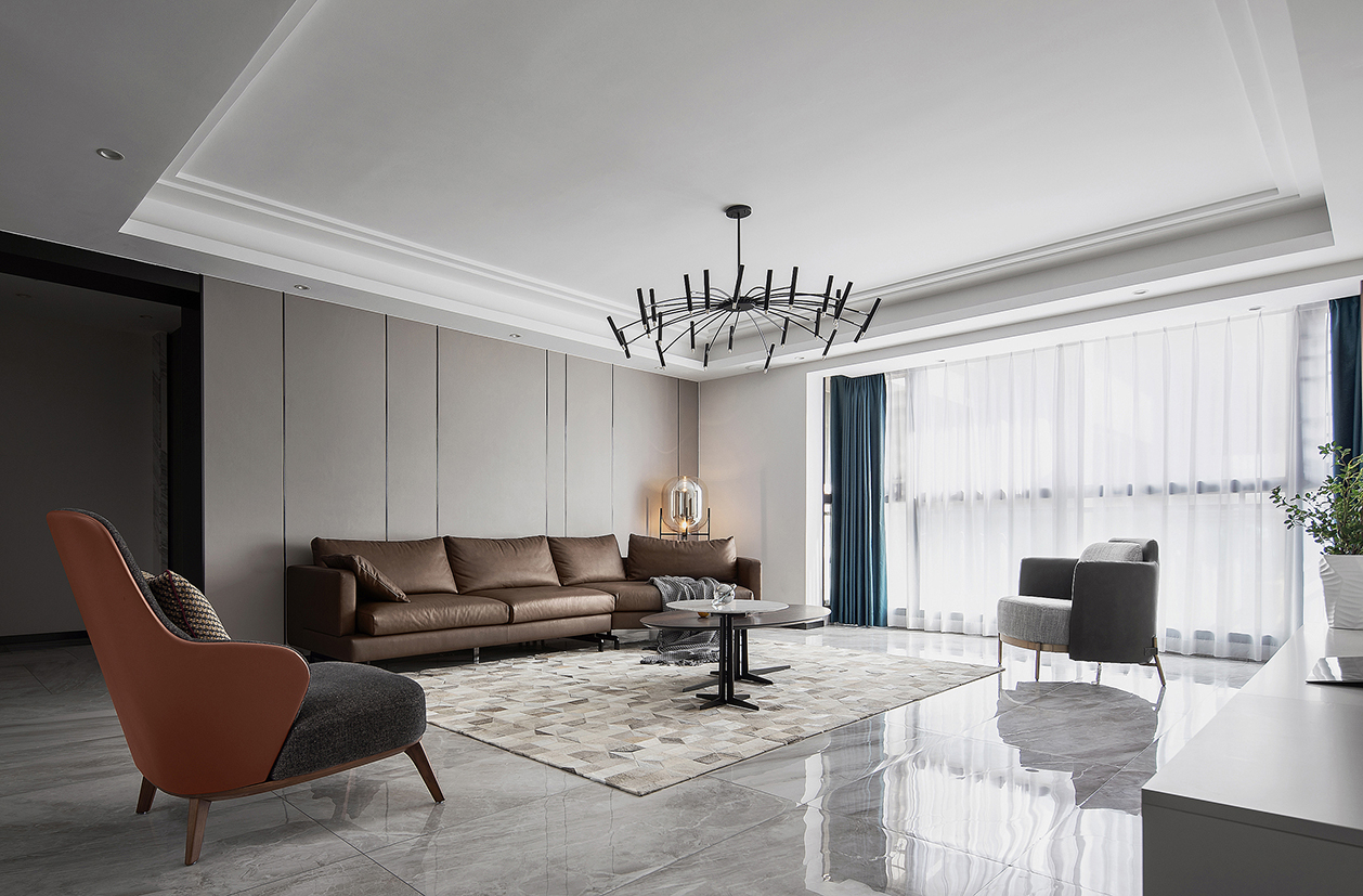 整个空间以干净利落的线条和造型的陈设,拉开空间层次,暖色调的配色点缀,增加设计中沉稳轻奢的元素,稳重、大气、却又不失品位,有令人眼前一亮的感觉。