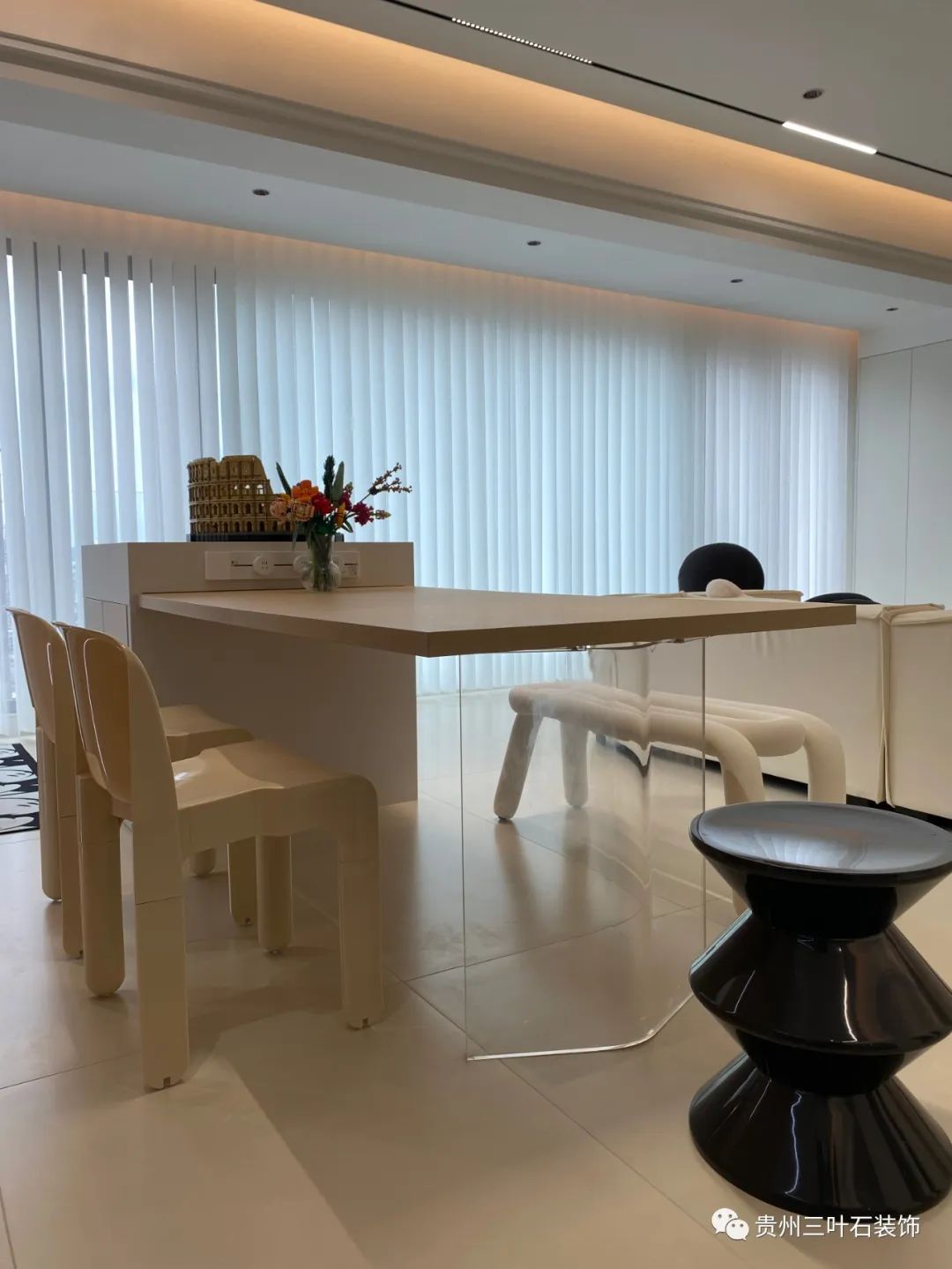 全屋选择浪漫的奶白色为主色调,搭配原木风,营造空间呼吸感,客餐厅一体设计,通铺柔光砖,裸调的高级质感满满。