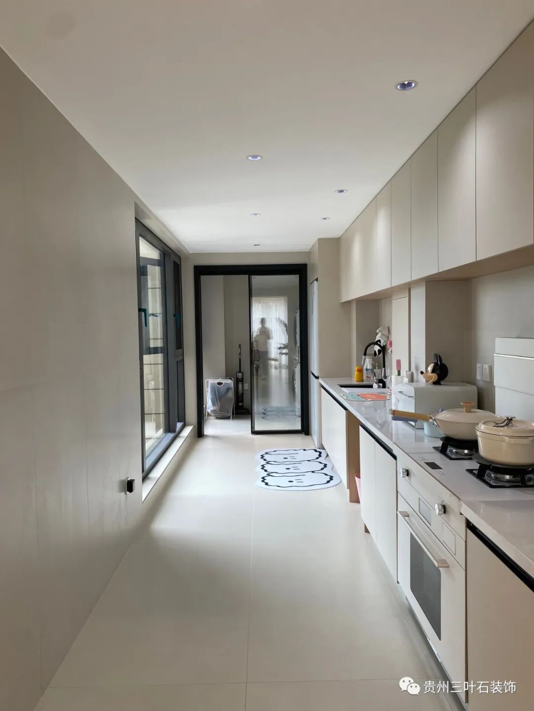 一字型布局,在一面墙上设置橱柜,水槽、灶具和储物,所有操作都在一条直线上完成,节省空间。管线短、经济,便于施工和水平管道的隐蔽。橱柜和吊顶承载了厨房里多数的收纳需求。橱柜空间够大,才方便收纳。